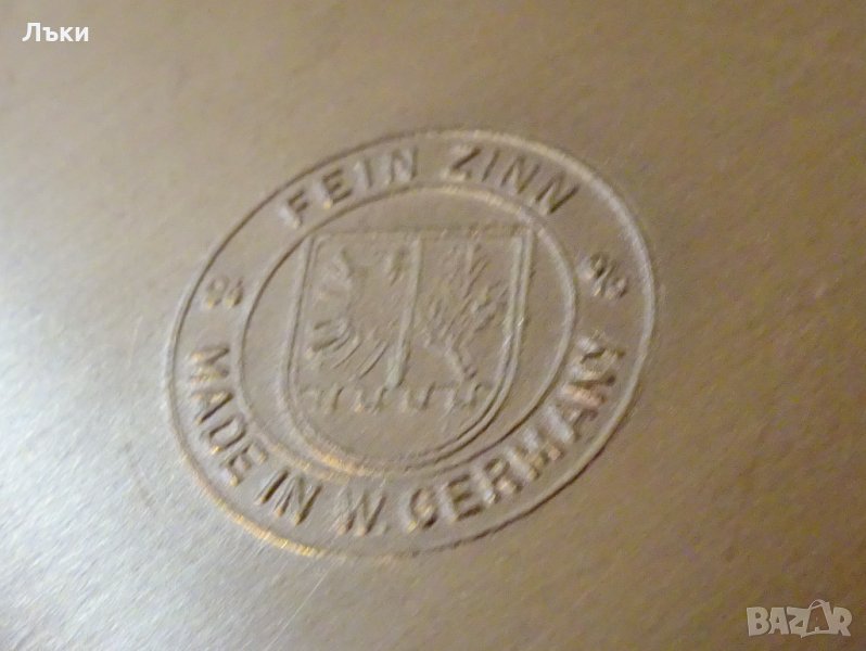 ръчна изработка от 95% калай и 5% сребро,маркирана.Декорирана по периферията с