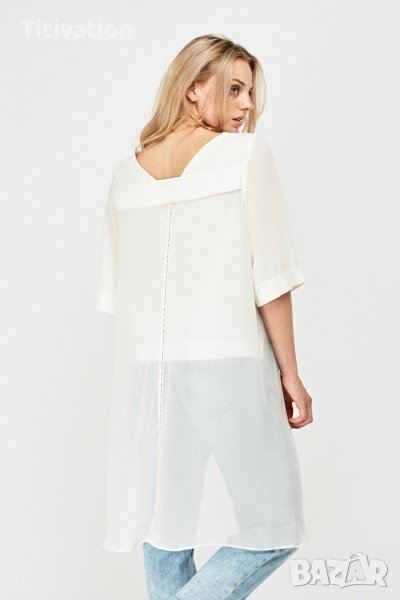 Бяла асиметрична блуза, снимка 1 - Корсети, бюстиета, топове - 26694485 Бяла асиметрична блуза, снимка 2 - Корсети, бюстиета, топове - 26694485 1/2