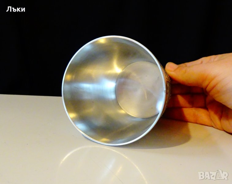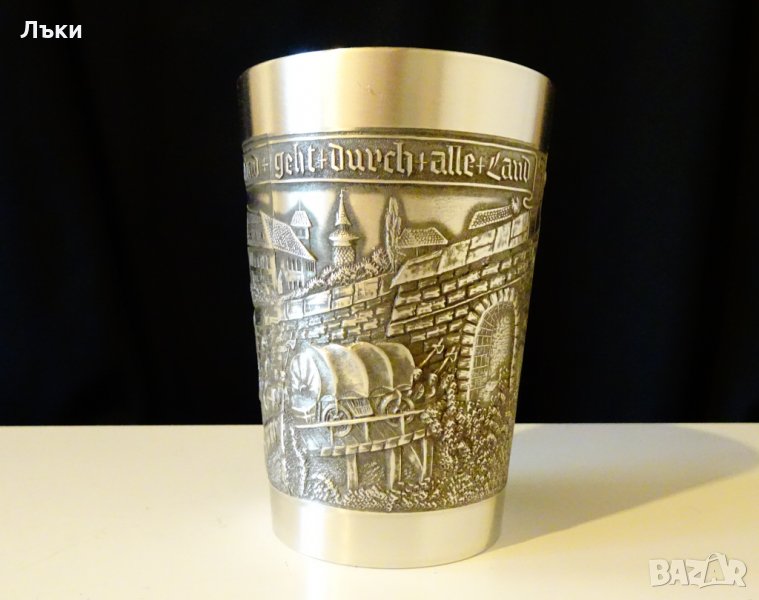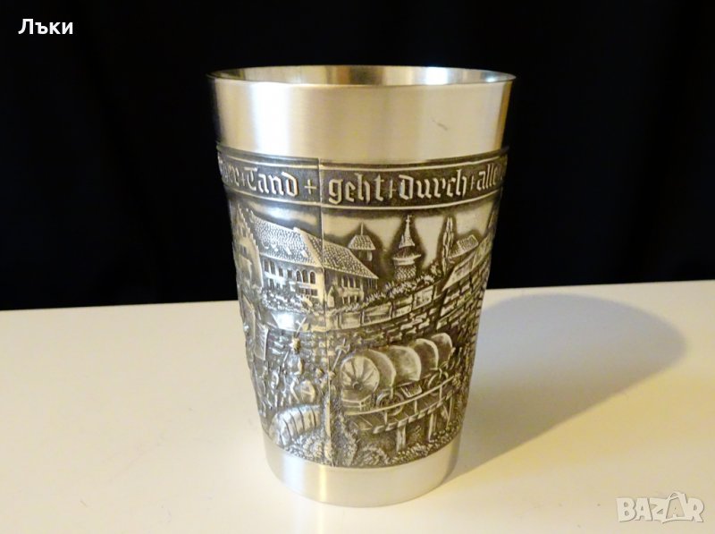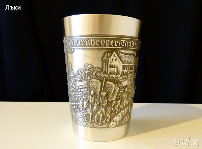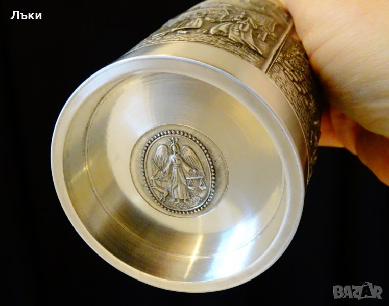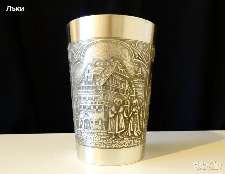 изработка от 95% калай и 5% сребро,маркирана.Има релефно изображение на