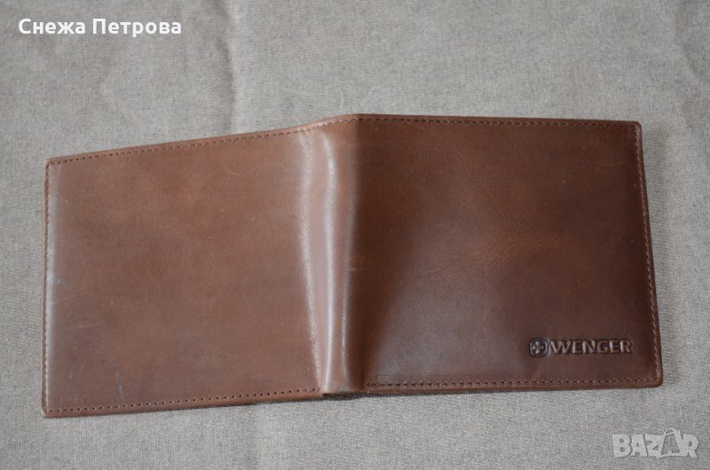 Портфейла е чисто нов и в оригиналната си кутия. Оригинален е на Швейцарската фирма WENGER, а модела е RAUTISPITZ W7-16. Портфейла е Хоризонтален тип и е изработен от тъмнокафява естествена телешка кожа. Портфейлът разполага с: