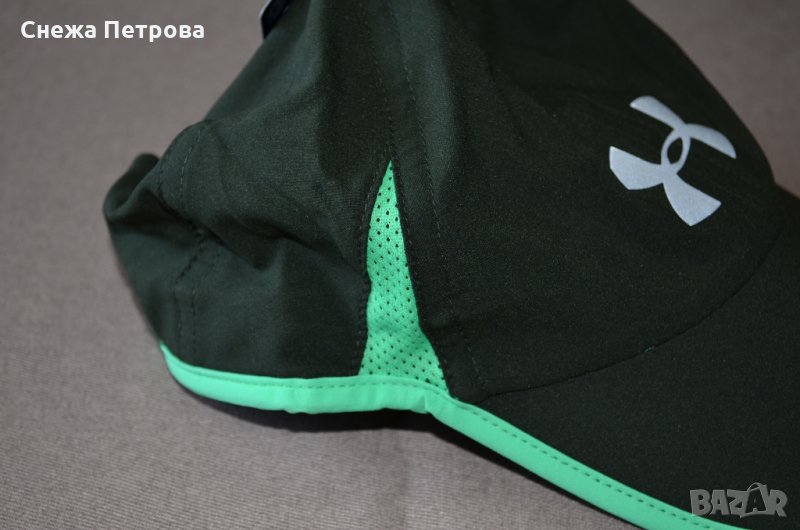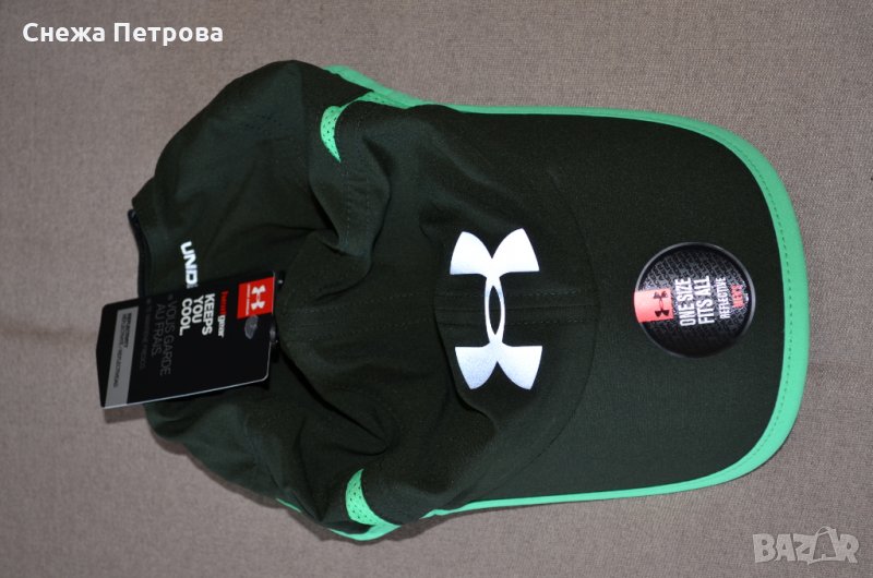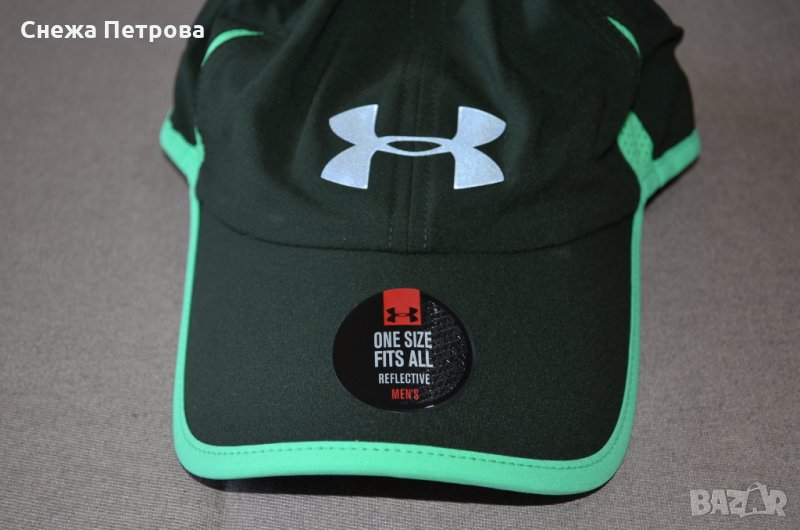 Шапката е чисто нова с етикета и в оригиналната си торбичка. Оригинална на Американската фирма Under Armour. Изработена е от 100% полиестер, лека, мека и приятна на допир материя. Отзад има лепенка за пристягане, мрежест плат отстрани. От вътрешната страна на шапката има пришита допълнителна HeatGear® лента, която помага да издърпва потта и по този начин да държи хладно и сухо. Голямо светлоотразително сиво гумено лого отпред на шапката и надпис на фирмата отзад.