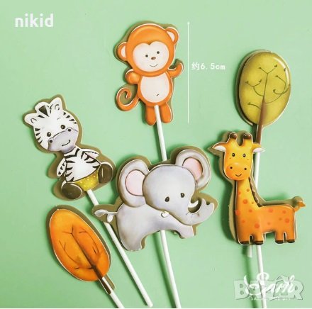 6 бр Слон жираф Зебра Маймунка листа топер картон на клечки украса декор за торта мъфини парти → Обява 26707628