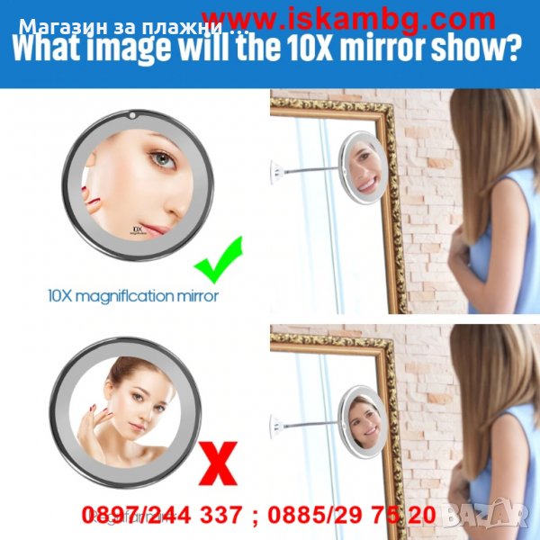 Огледало за гримиране (10 пъти увеличение+LED осветление) - код 2479