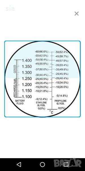 - За измерване на антифриза са направени две скàли - според производствената характеристика - Етилен гликол или Пропилен гликол.