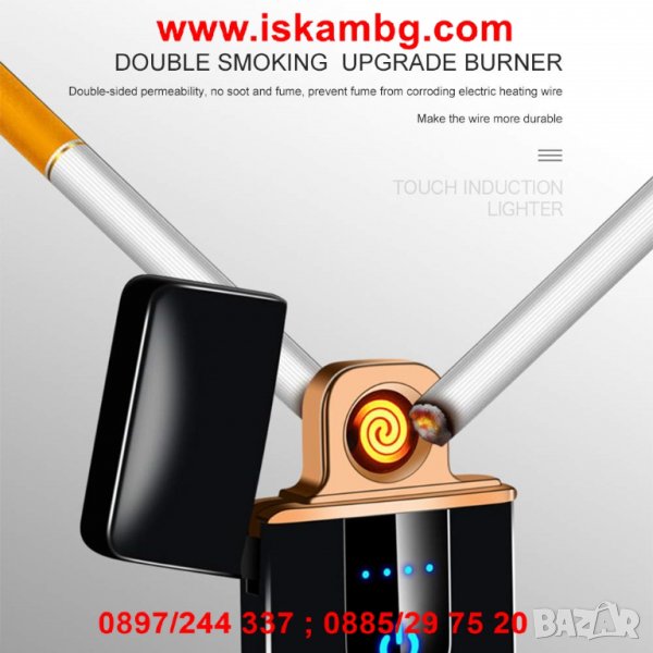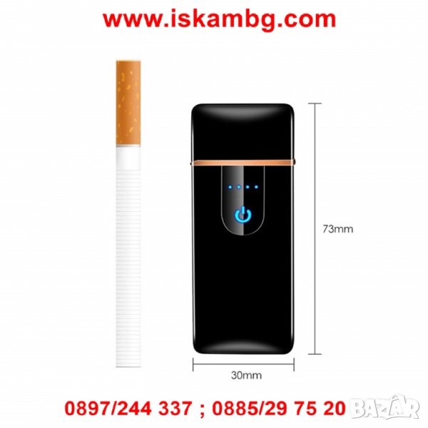 Стилна и луксозна ветроустойчива акумулаторна електронна запалка на ток , плазмена запалка с реотан и включване със сензорен бутон, индикация за капацитета на акумулаторната батерия и зареждане с USB тип Тесла противовятърнa. Запалка на ток подходяща за цигари, пурети или за подарък.