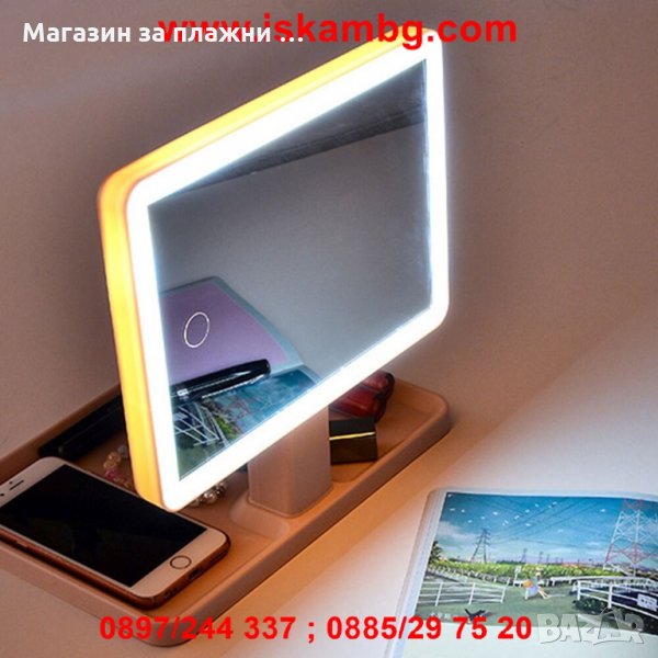 LED огледало за маса е много полезно за поставяне на грим, разресване на коса или скубане на вежди и има атрактивен декоративен дизайн.