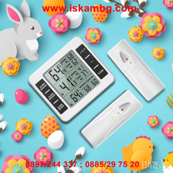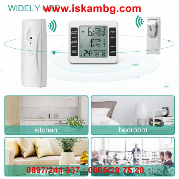 3. Безжичният термометър е лесен за инсталиране. Дисплеят може да стои на масата, да виси на стената, магнит на хладилника. Безжичният сензор може да се закрепи на вратата или да виси на стената.