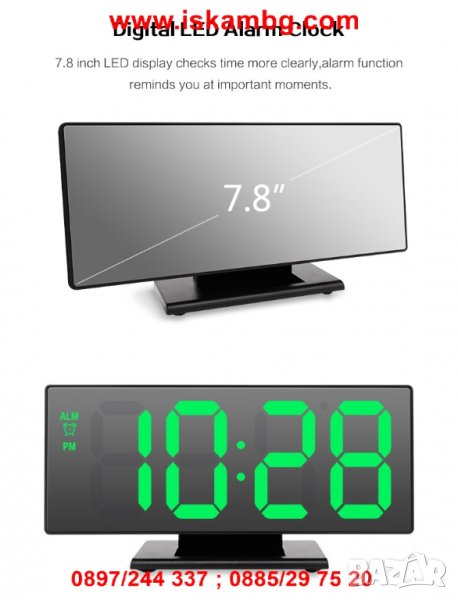 Настолен часовник с голям огледален дисплей - код 3618 → Обява 26721979