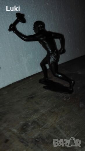 Рядка играчка човекоподобна маймуна ,висока14см.както е видно от снимките.В най широката си част(размаха на ръцете)11,5см.Играчката е Съветска.В лявата ръка държи брадва,а в дясната камък.