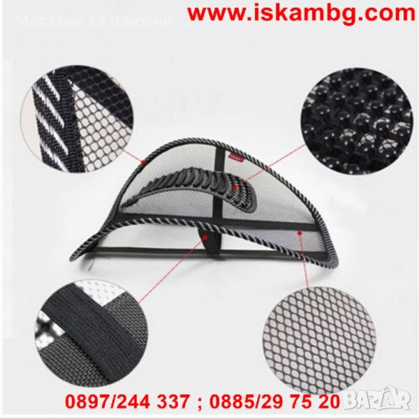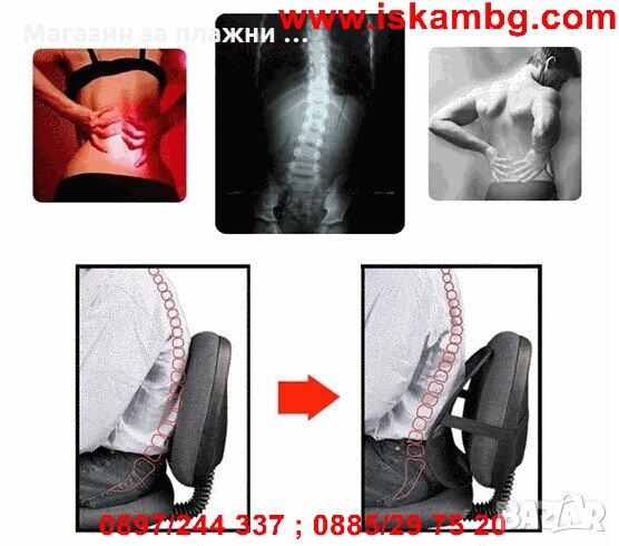 - Поставя гръбначният стълб в анатомично положение и освобождава напрежението от продължително седене и шофиране.