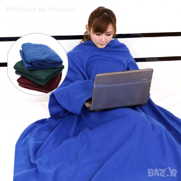 Новото одеяло с ръкави Snuggie е изработено от особено мек микроплюш. Удобните и просторни ръкави дават възможност за свободно боравене с ръцете. Държи топло от глава до пети, намалявайки сметките за отопление и оставяйки необходимата свобода на ръцете за работа на лаптоп, четене на книга и други дейности. За разлика от стандартните одеяла, Snuggie не се изхлузва и подвива, осигурява комфортна свобода на движение. Подходящо е за всеки член от семейството.