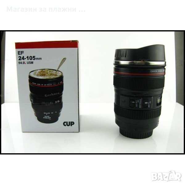 Canon EF 24-105mm f/4L USM. Тя е страхотен декор за вашия офис, както и оригинален подарък за приятел, колега, съученик и всеки любител на фотографията. Термо чашата-обектив е мултифункционална и може да бъде използвана за пиене на кафе, фреш, мляко, хапване на сладолед, както и за поставка за моливи, каса за стотинки и всичко друго, за което се сетите. Материалът, от който е изработена, е подходящ за съхранение на храна, подобен на този, от който се правят купи за салати. Двойната стена на тази термо чаша – обектив запазва температурата на поставените в нея течности, а капакът и за затваряне съхранява аромата на сутрешно кафе или капучино, като може да бъде използван и като чинийка за бисквити.