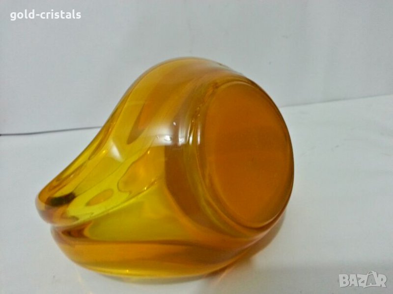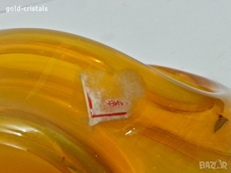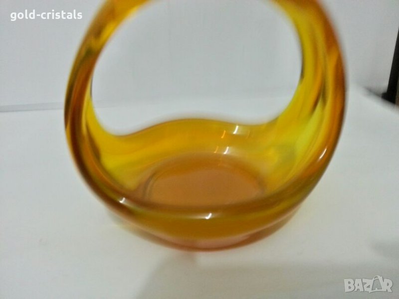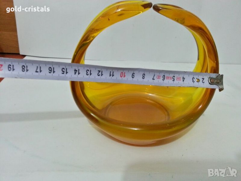 Антикварна кошница кошничка купа фрактиера бонбониера съд за ядки ръчна изработка стар старинен ретро арт декор винтидж колекция стари старинни антикварни предмети обзавеждане за дома и семейството подходящи за подарък за ценители и колекционери кристално стъкло цветно стъкло цвят кехлибар с етикет неизползвана без забележки