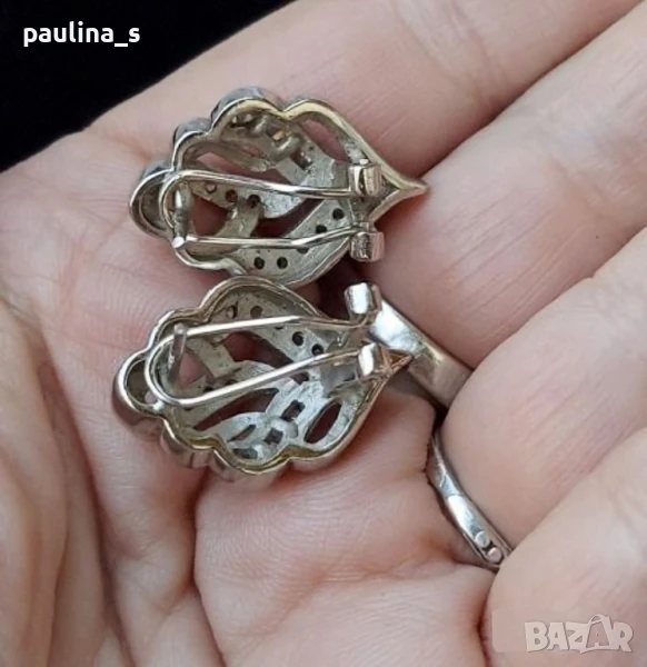 1️⃣ . Масивни сребърни обеци проба 925 Житен клас. Цената е крайна 109,99лв / 55 евро. Камъните са естествени циркони висок клас 3А, не са носени изобщо. Камъните са захванати здраво - вковани, закопчаването е със стабилен английски клипс, имат двойна маркировка с Житен клас. Много ефектни и изумително красиви, единствен модел и бройка, не се продават на грамаж. Подходящи за повод или подарък. Уникални. Дължина 2,7см / Ширина 1,5см.