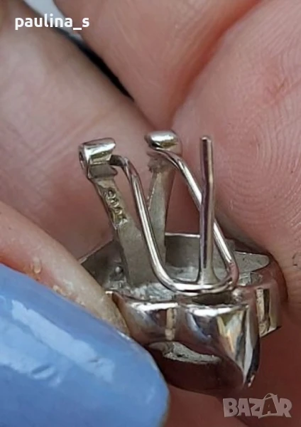 Два чифта / Масивни сребърни обеци с камъни, закопчаване английски клипс / проба 925