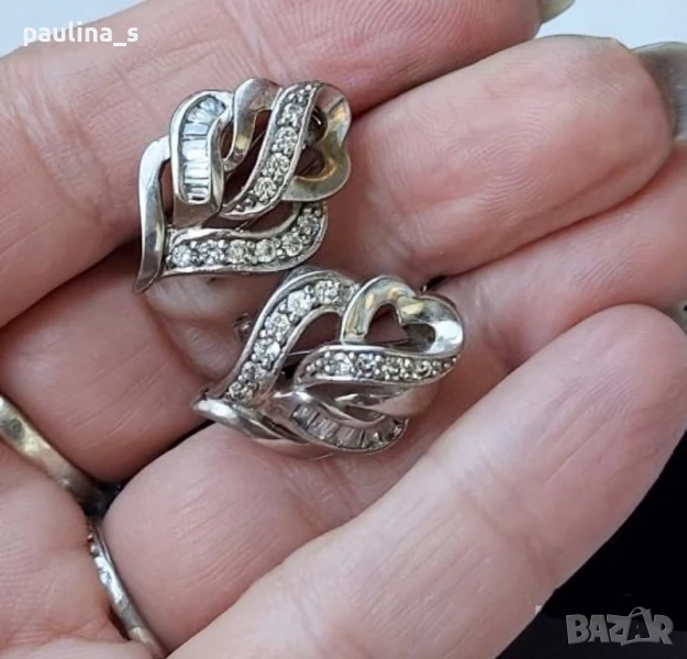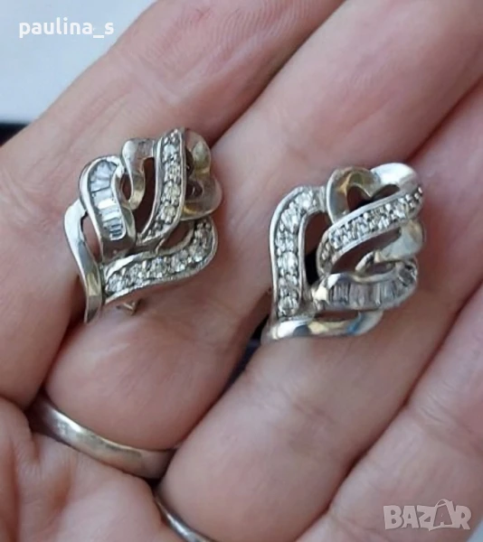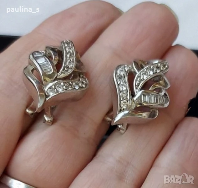 2️⃣. Масивни сребърни обеци с циркони и бели топази - багети, проба s925. Цената е крайна 119,99лв / 60 евро. Закопчаването е с широк английски клипс. Обецита са грамажни, тежки, Уникален артикул, като нови. Носени са веднъж за фотосесия, но нямат следи от употреба, подходящи за подарък или повод. Изумително бижу, не се продават на грамаж! Размери 1,9см / 1,2см.