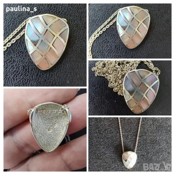 2️⃣. Колаж / Винтидж / Антика / Масивна висулка / педантив с разноцветен седеф / двойно маркирана, руска, проба 925 и звезда. Цената е крайна, без пазарлъци 69,99лв / 35 евро. Старо руско колие със многоцветен седеф. Изключително красиво бижу с антикварна стойност и цена. Педантивът е доста грамажен, маркиран с печат 925 (титър за съдържание на благороден метал в сплавта-сребро) и печат наподобяващ звезда. Размери 19мм / 24мм. Дължината на синджира е 45см - отделна цена 29,99лв / 15 евро. Моля, разгледайте и другите ми обяви и последвайте профила. Приятно разглеждане. Може да създадете пакет и да използвате доставката, тогава ще направя отстъпка от общата цена. При единична поръчка, цената не се коментира по никакъв начин, продажбата е с благотворителна цел! За лечение! Благодаря за вниманието и отделеното време 🙂
