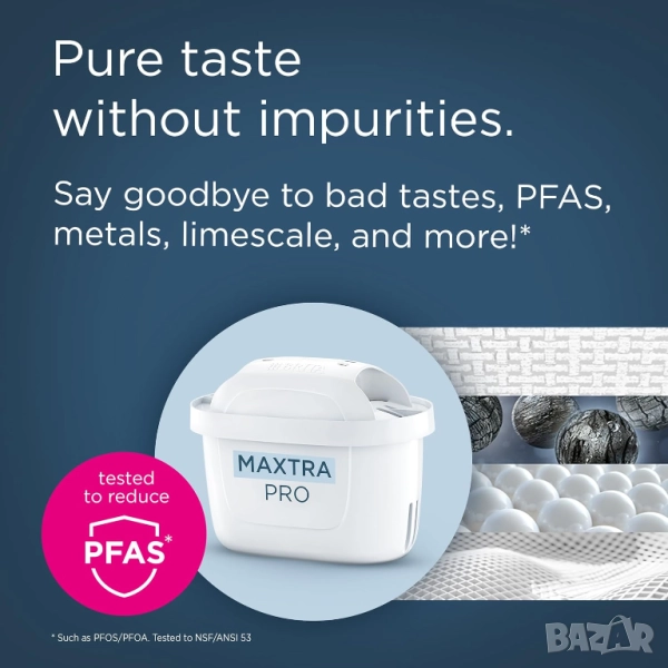 Оригинални филтри Brita Maxtra Pure Performance и Limescale Expert, цени на едро за крайния потребител, съвместими със ВСИЧКИ нови и стари кани Брита. Най-добро качество филтри, най-продавани и с най-голяма дълготрайност на пречистването на вода в сравнение с другите марки като Аквафор и Evolve. Това е така благодарение на иновативната Макстра MicroFlow технология, която успешно намалява субстанциите като тежки метали, хлор и хлорни съединения, органични замърсявания и котлен камък, които влошават вкуса и аромата на питейната вода! Кристално чистият вкус на водата е най-голямото доказателство за качеството на филтрация на BRITA MAXTRA PRO! Не се доверявайте на фалшифицирани данни или проучвания от други марки филтри, които използват именно бранда BRITA Maxtra Pro за да се рекламират!