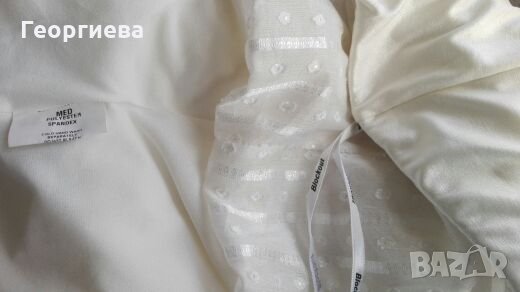 Роклята е в млечно бял цвят и за това се вижда оттенък на снимките.На една от тях снимах в близък план материите и цвета.Подходяща е за всякакви поводи.Нова е, но без хартиен етикет - цената е съобразена с това!