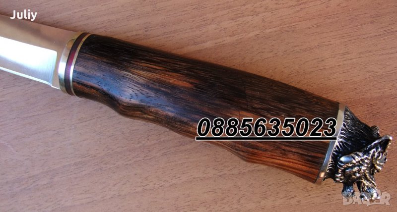 Много красив и практичен нож с огледално острие и дървена дръжка.