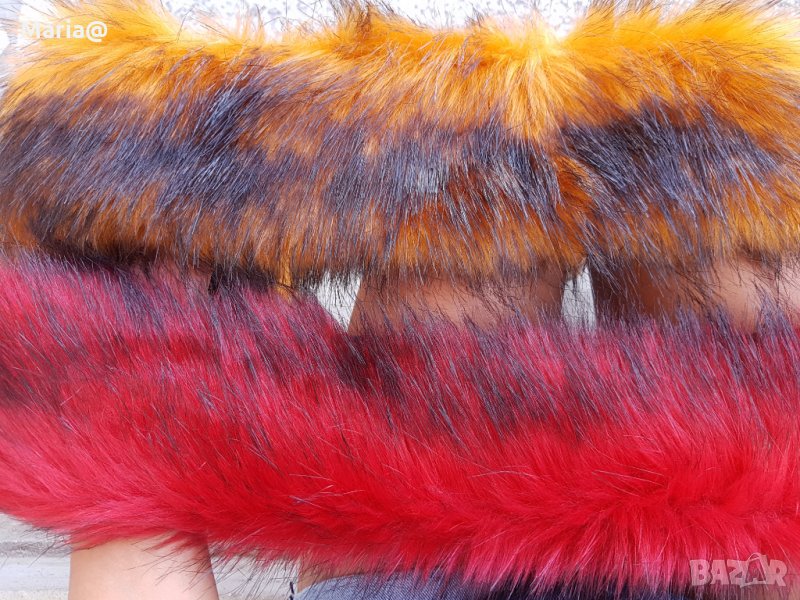 Жълта Пухена яка Еко косъм.75 см.и 1 м.дълга. Пух за качулка Дълъг Изкуствен. Якичка Яки цветове