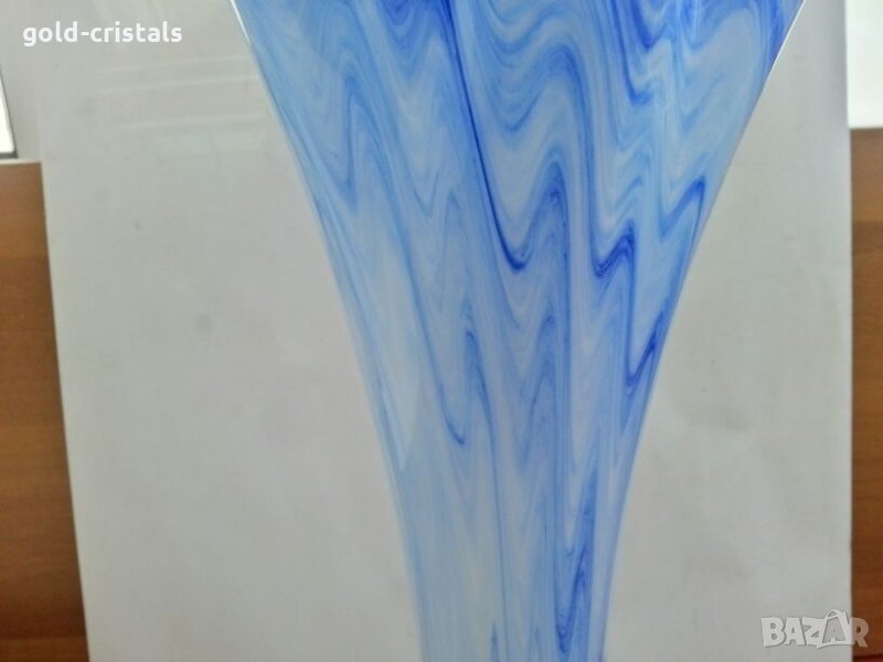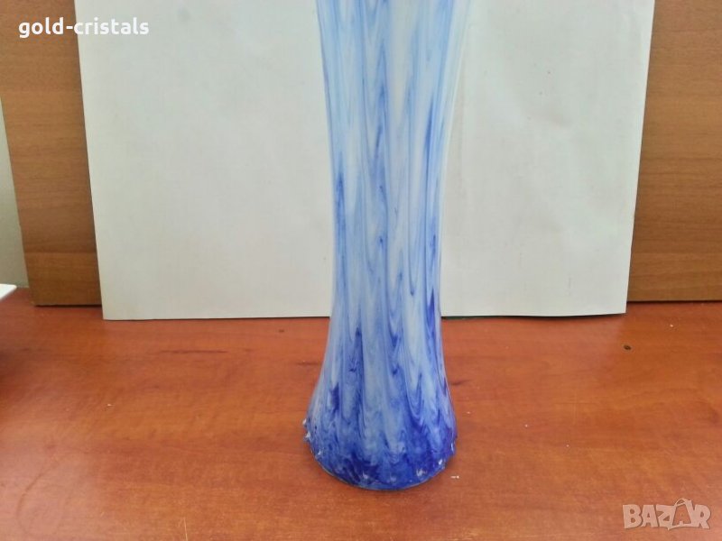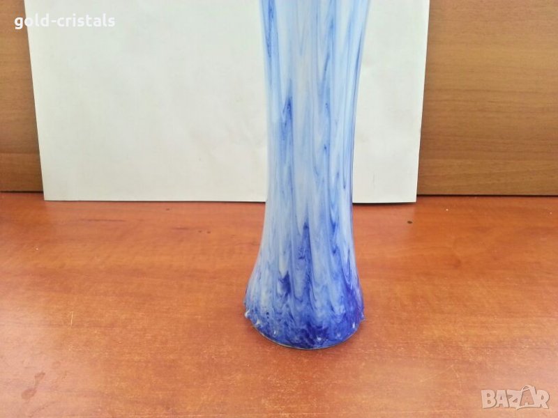 много голяма стъклена ваза ръчна изработка кристално стъкло цветно преливащо синьо стъкло ретро стара арт декор винтидж колекция неизползвана без забележки стари антикварни предмети обзавеждане за дома и семейството подходяща за подарък за ценители и колекционери
