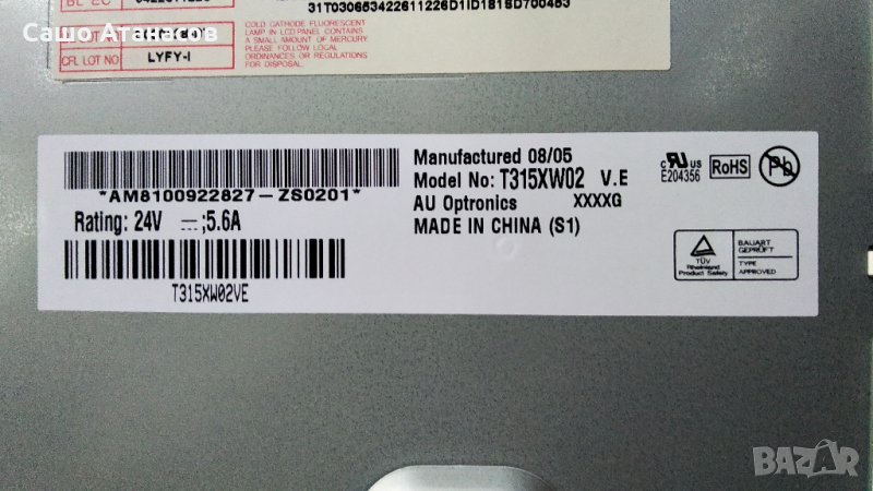 Модули от телевизор SONY KDL-32S3000 със счупена матрица (панел T315XW02 V.E )