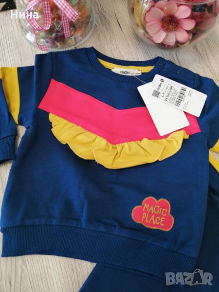 Бебе екип от Cikoby. Пъстри, наситени и къдрави цветове 🤩😍🤩 Налични размери: 9/12 месеца. За още моделчета разгледайте и останалите обяви в профила ми.