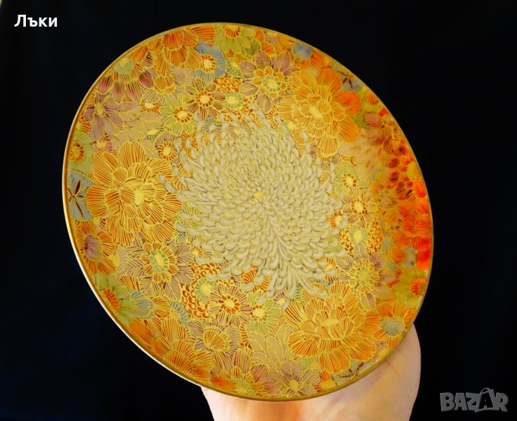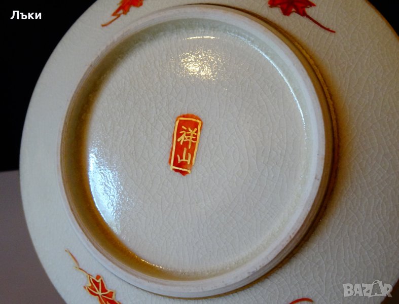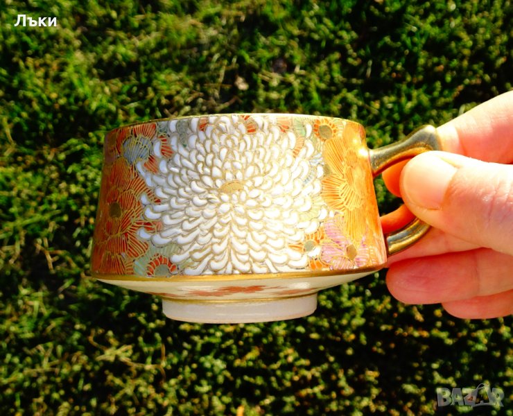 Старинен сервиз японски порцелан оригинална Сацума от периода Мейджи (1868-1912),създаден от школа Шозан.Всички 20 части са подписани със злато в правоъгълник на червен фон./Satsuma Shosan Meiji period 1868-1912 /.Сервиза се отличава с плътен и ефектно съставен флорален декор с много злато 24 карата.Цветовете са разнообразни,а хризантемите в центъра на композицията са засилени с бял емайл.Хризантемата е свещен символ в Япония от VII век,когато нейно изображение вече се среща върху ножовете микадо.Символ на власт и само членовете на императорското семейство са можели да го носят върху дрехите си.Присъства в националния флаг,върху монети и върху най-висшия японски орден „Орденът на Хризантемата”.Даже самото название на цветето – кику,означава на японски слънце,символ на светилото,което дава живот на всичко на Земята,на дълъг живот,щастие и благосъстояние.