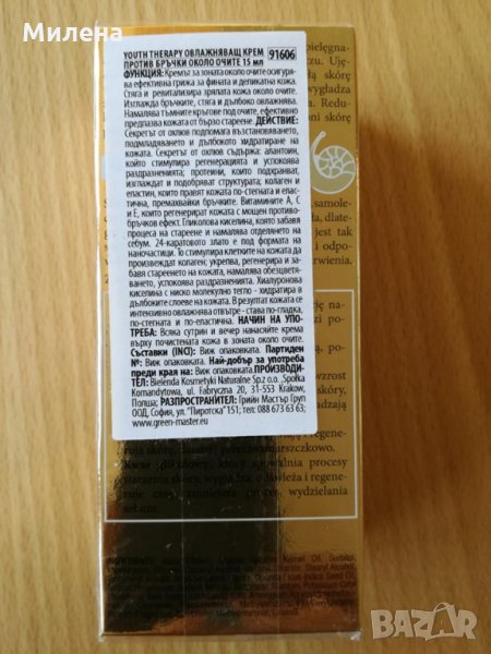 YOUTH THERAPY Овлажняващ крем против бръчки около очите, 15 мл, снимка 1 - Козметика за лице - 26763731 YOUTH THERAPY Овлажняващ крем против бръчки около очите, 15 мл, снимка 2 - Козметика за лице - 26763731 YOUTH THERAPY Овлажняващ крем против бръчки около очите, 15 мл, снимка 3 - Козметика за лице - 26763731 1/3