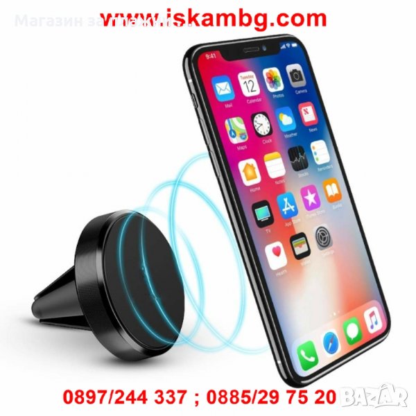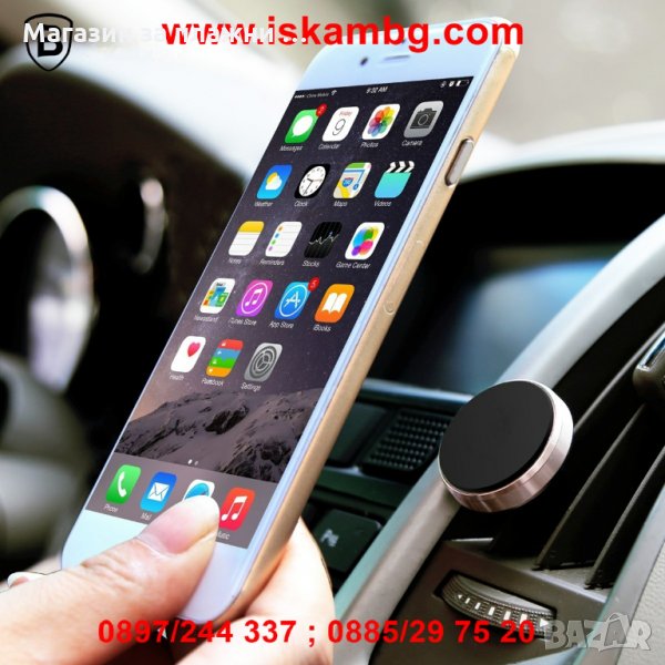 Тази малка поставка е много удобна и практична. Тя държи здраво телефона ви, докато шофирате, без да пречи или да изпада лесно. Много е лесна за използване - поставете основата в решетката за парното или климатика, а малкият магнитен диск залепете на гърба на телефона си. След като доближите телефона до основата, двата магнита се привличат и телефонът ви буквално залепва за поставката.
