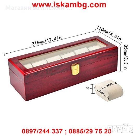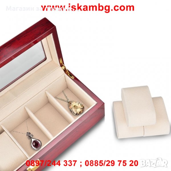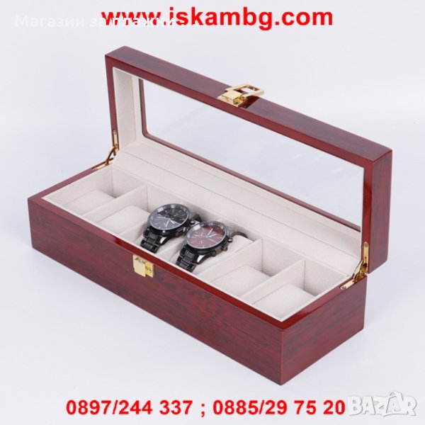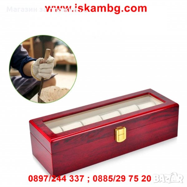 ЧЕРВЕНА ДЪРВЕНА КУТИЯ ЗА 6 ЧАСОВНИКА - код 2170 → Обява 26767978