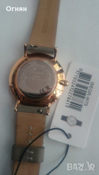 Седефен циферблат, стрелките, индексите и корпуса с PVD ЗЛАТНО покритие, Каишка от естествена кожа с декорирания, тока с бренд