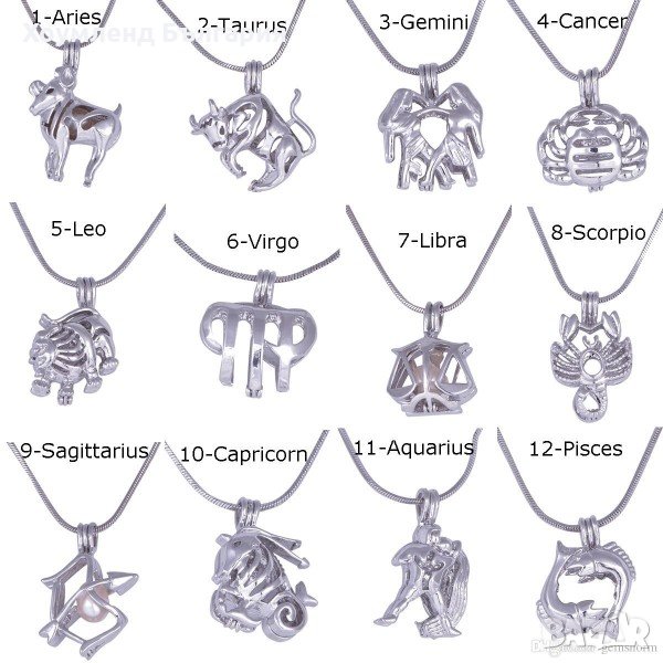 Малка кутия с верижка и висулка с формата на съответната зодия - отваря се лесно и в нея се поставя перлата;