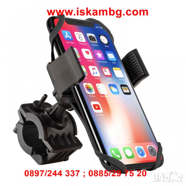 Обичате да карате велосипед или мотоциклет и да заснемате всеки момент с телефона си, но се чудите къде да сложите телефона си или вашата навигация... Тази стойка е точчно това, от което имате нужда! Благодарение на подсилената долна захващаща част, се закрепя изключително здраво за кормилото на колелото или мотоциклета, а телефонът Ви приляга плътно върху гумираната повърхност, притиснат здраво със стабилни рамена от двете му страни и разтегателни ушички във всеки ъгъл. По този начин може да бъдете стпокойни, че Вашият телефон, камера или навигация са закрепени стабилно без опасност от падане.