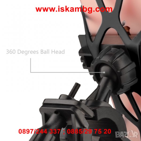 За допълнително удобство допринася движещото се на 360° рамо, благодарение на което може да си осигурите различен ъгъл на наместване. Стойакта се наглася в различни положения. Така докато карате велосипеда или мотора, може да имате пълна функционалност на телефона. Възможност за заснемане на видео и снимки в движение.