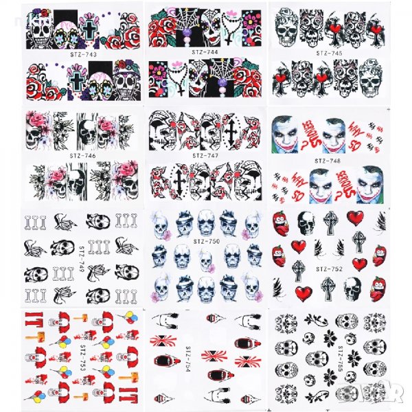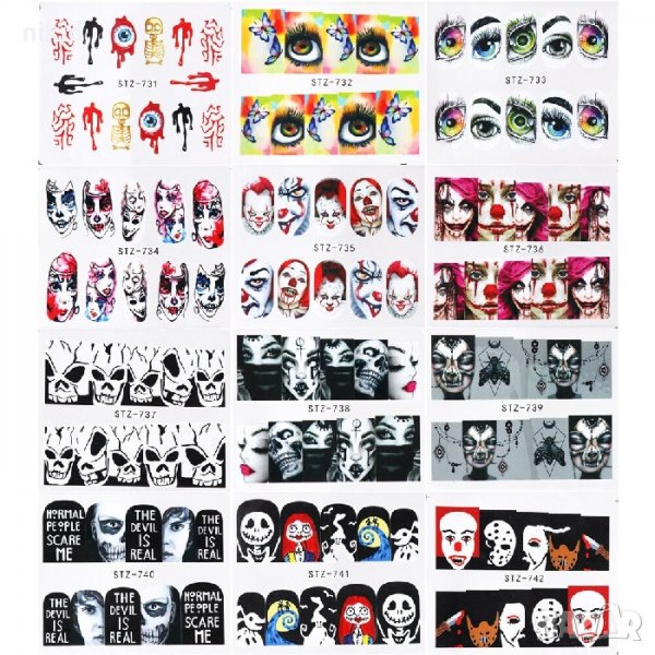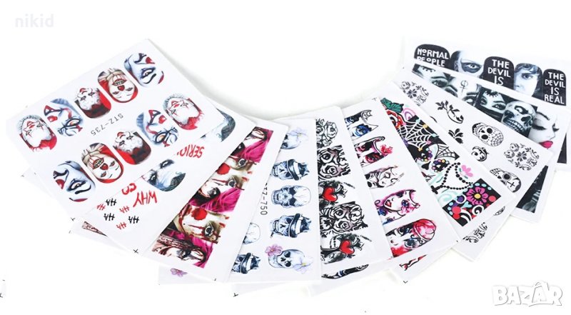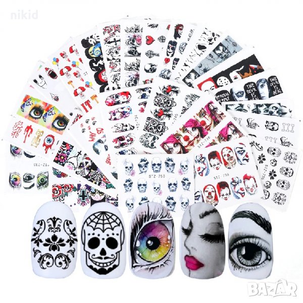 Хелоуин Halloween сет 25 бр слайдер ваденки водни стикери за нокти маникюр татос → Обява 26774108