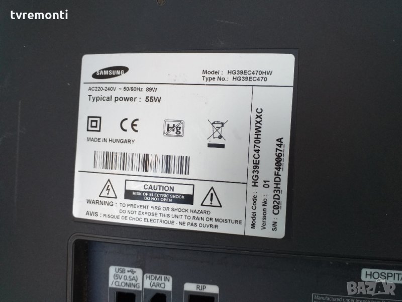 Борда е гарантирано работещ Демонтиран от телевизор със счупен дисплей SAMSUNG модел HG39ES470HWXXC с панел CY-DF390BGMV1V тествана от нашия техник