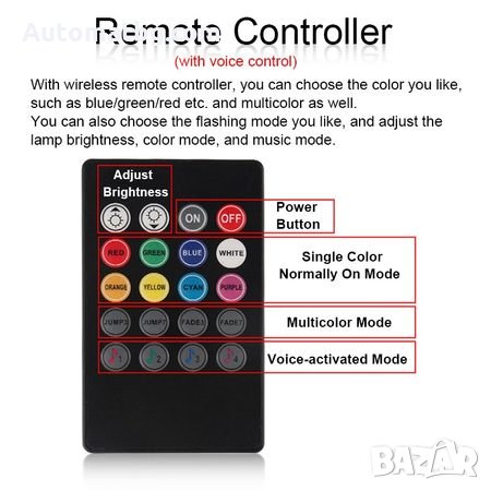 LED ленти Automat CR - 104, цветомузика за автомобил, Интериорно осветление 12 диода