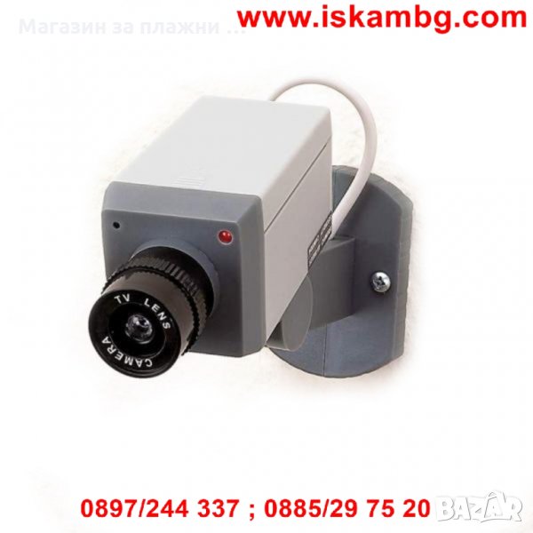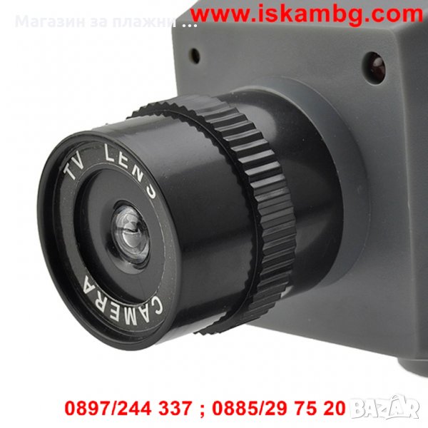Захранването се осъществява от 3 броя АА алкални батерии. Върху корпуса е разположен бутон, от който много бързо и лесно можете да я пускате и спирате. Осигурете максимална защита на вашия дом, къща или офис. Дори и хора, които имат малки познания относно такъв тип охранителна техника, биха се заблудили, че камерата действително е истинска. Освен това, ако разполагате с ограничен бюджет и искате да държите престъпниците надалеч, точно този артикул е решението на проблема. Предимството на такъв вид бутафорни фалшиви камери за видеонаблюдение е, че те са малко познати на повечето престъпници, което улеснява защитата и сигурността.
