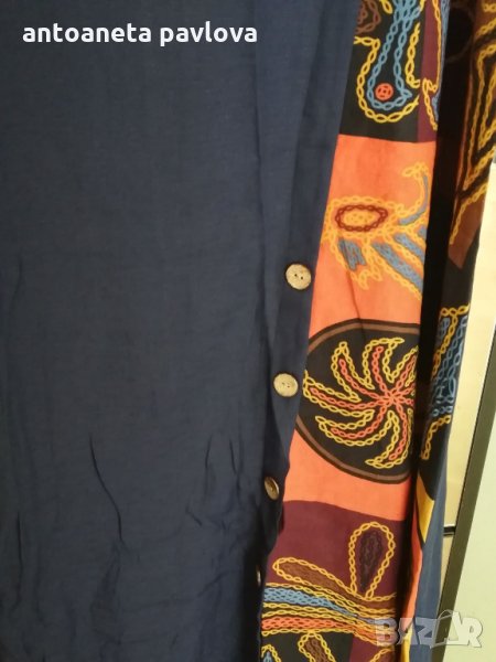 ежедневна рокля в тъмносиньо с шарена платка и копчета за декорация Роклята е внос по етикет 5хл н е по - малка За дама с гр об 114 - 116 см