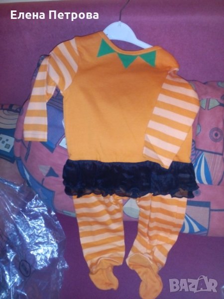 Страхотен комплект, подходящ за Хелоуин, и за ежедневно носене. С лента за коса и шапка, облечено изглежда страхотно.Размерът е 18/24месеца, за момиче.