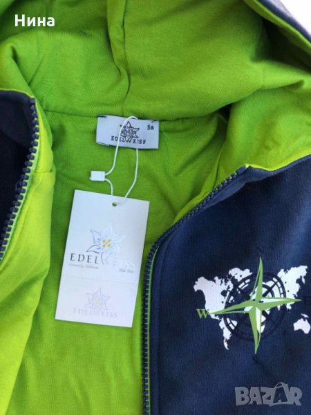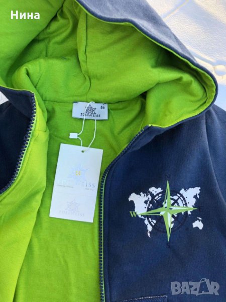 Уникален суичър- яке, с подплата и по ръкавите. 🔝🔝🔝 Топ визия и качество. Размери: 4 години, 6 години, 8 години и 12 години 🛍️ С качулка. За още моделчета разгледайте и останалите обяви в профила ми.