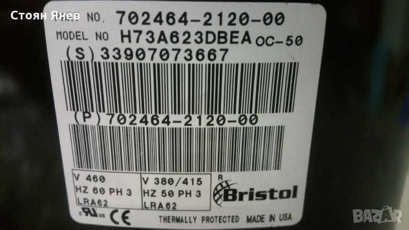 Хладилен компресор Bristol H73A623DBEA, снимка 1 - Други машини и части - 26785753 Хладилен компресор Bristol H73A623DBEA, снимка 2 - Други машини и части - 26785753 Хладилен компресор Bristol H73A623DBEA, снимка 3 - Други машини и части - 26785753 1/3