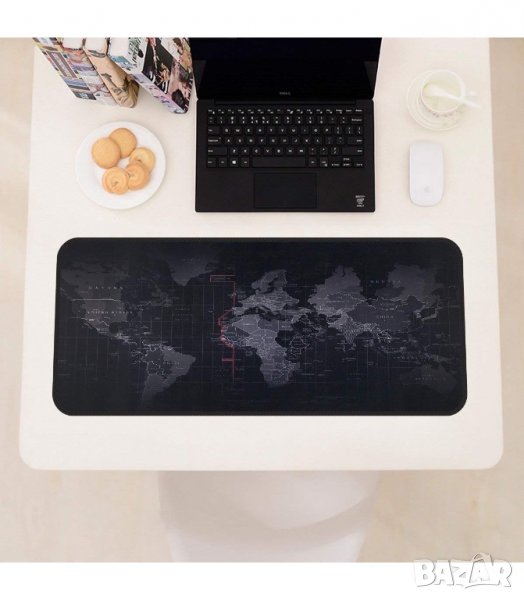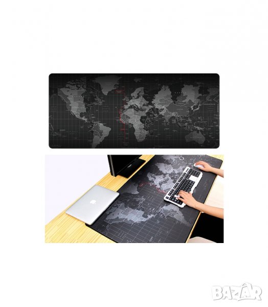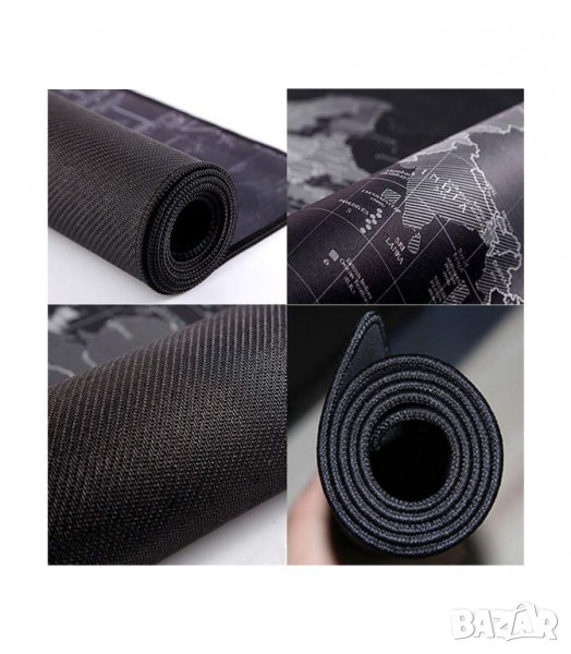 Голяма мека подложка за мишка и клавиатура с гумиран гръб против хлъзгане и принт на картата на света в 3 различни размера.