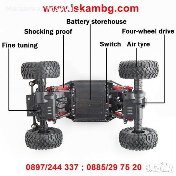 • Големи оф роуд гуми, с които може да се катери по скали и всякакви неравни повърхности;