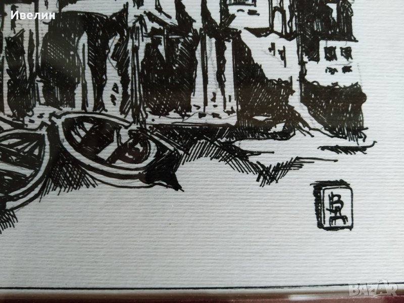 картина-пейзаж.техника туш на картон,подписана с размери 16см/18см,в рамка със стъкло с размери 26см/29см.