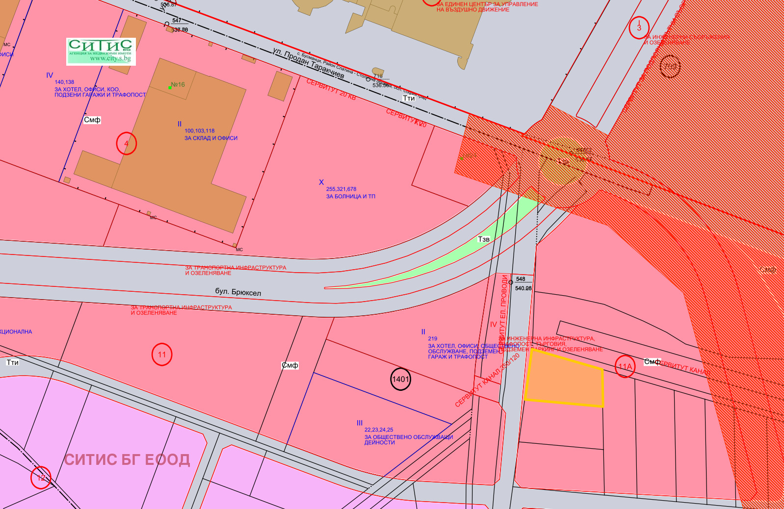 Агенция СИТИС предлага на Вашето внимание парцел в непосредствена близост до ул. Продан Таракчиев и РВД Смесена многофункционална зона, правилна форма, лице 37м. на ул. Подпоручик Йордан Тодоров, плътност на застрояване 60% Кинт 3,5. Равен терен в съседство с офис сгради, представителства и логистични центрове.