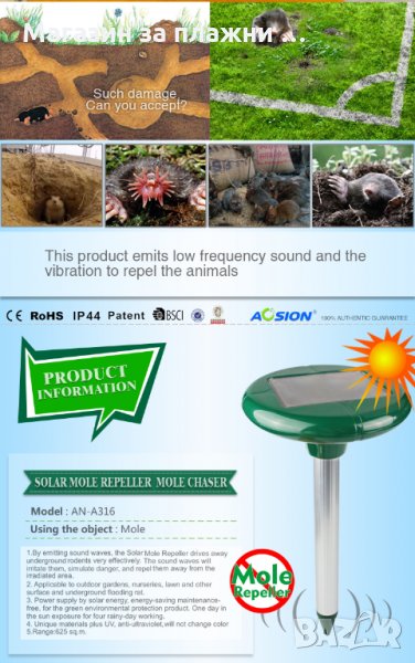 Подземните гризачи имат слабо зрение, но в замяна на това силно развит слухов апарат и повишена чувствителност към почвените вибрации. Електронният уред за борба с подземни гризачи използва тази им чувствителност. Той издава вибриращ звук с променящи се параметри 400Hz—1000Нz през интервал от 20 сек. Това дразни и плаши подземните гризачи и ги принуждава да напуснат охраняваната територия.