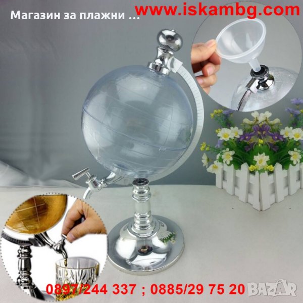 Консумирането на бира никога няма да е същото след като вече имате диспенсър с формата на глобус. Този забележителен аксесоар може да направи от всяко събиране истинско събитие. Поставяйки го на масата, ще съберете погледите на всички от компанията и особено на любителите на студеното пиво.